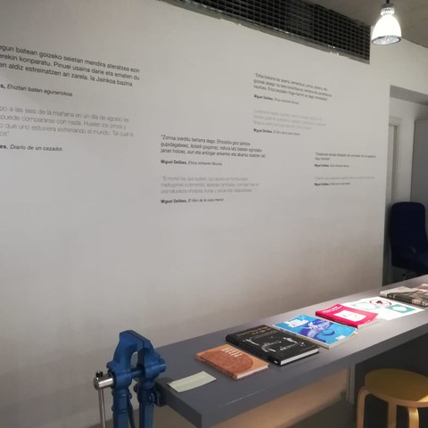 En la exposición además de objetos personales, entre las que se encuentra su BH azul, correspondencia y publicaciones del escritor, se podrá contemplar la obra fotográfica Cazando imágenes. Fotografías de Francisco Ontañón para El libro de la caza menor de Miguel Delibes, producida por la Fundación Miguel Delibes y comisariada por José María Parreño. La misma está compuesta por una selección de cuarenta fotografías que Francisco Ontañón realizó entre 1961 y 1963, acompañando a Miguel Delibes y su cuadrilla. Se trata de imágenes que muestran gentes y paisajes de la España de los años sesenta; cazadores que preparan su jornada o, ya en acción, recorren el campo en busca de piezas; hombres, mujeres, niños enmarcados en ambientes rurales… Imágenes que rescatan para el presente los paisajes, el entorno rural y la sociedad agraria de la época.
